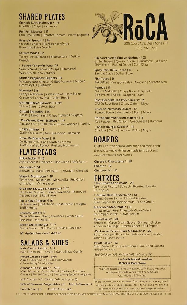 Nestled in the heart of Des Moines, RoCA offers a delightful blend of New American cuisine and trendy bar vibes. From vegan options to hearty shared plates, this upscale spot caters to a diverse range of palates. The menu boasts delectable dishes like brussel sprouts and smashed potatoes, perfect for sharing with friends or a romantic date night. Sip on handcrafted cocktails in a chic ambiance adorned with thoughtful decor and a tiki-inspired vibe. While the service is attentive and accommodating, some customers have noted minor hiccups during peak hours. Despite this, RoCA shines in its culinary offerings and overall experience. Whether you're looking for a casual happy hour spot or a memorable dinner outing, RoCA promises a satisfying visit on Court Ave.